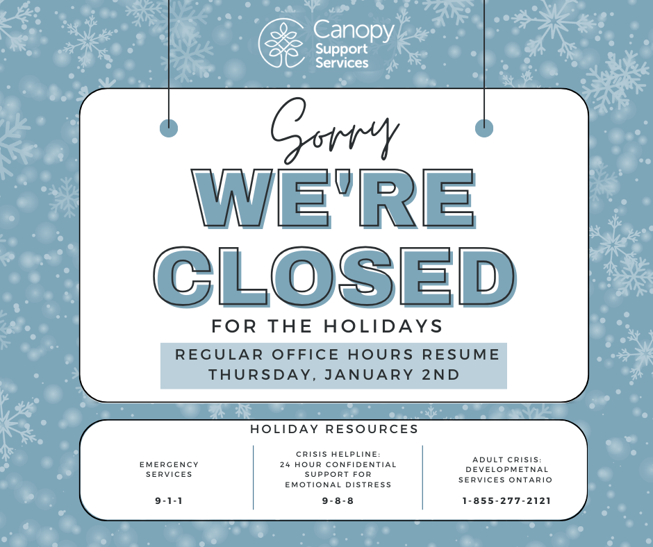 Family Day: Canopy Offices will be closed on Monday, February 16th. Regular operations will resume on February 17th at 8:30AM.