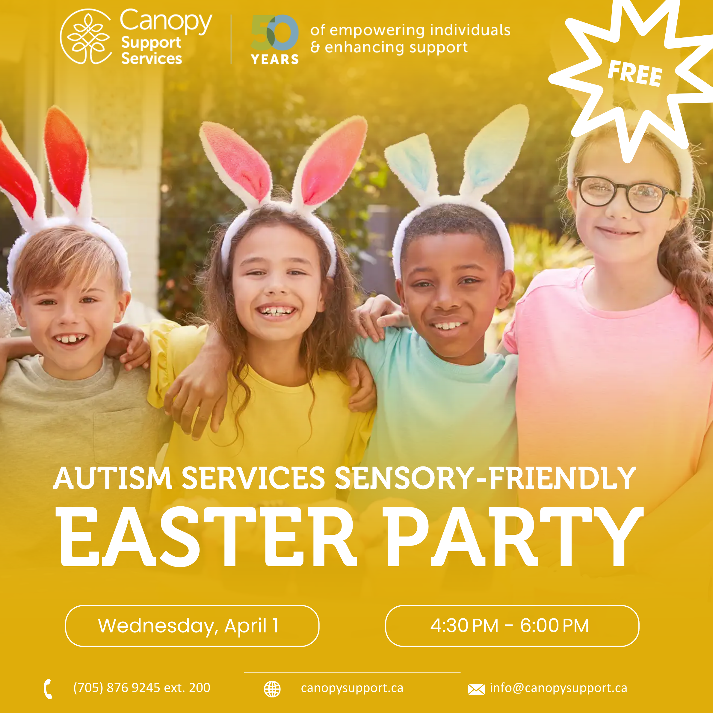 The Autism Services team at Canopy Support Services warmly invites children and youth with Autism Spectrum Disorder and their families to our special Easter Party at the Main Office!